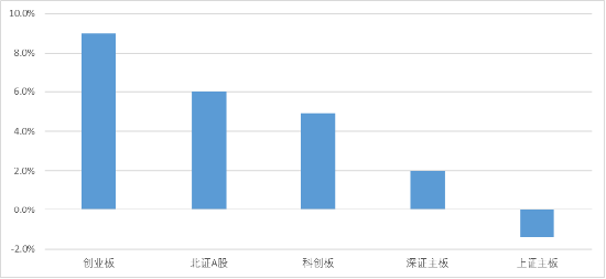 本周国内证券市场主要指数表现分化,其中创业板指涨幅最大为2.4%。申万一级行业中,电力设备行业涨幅最大为7.39%。